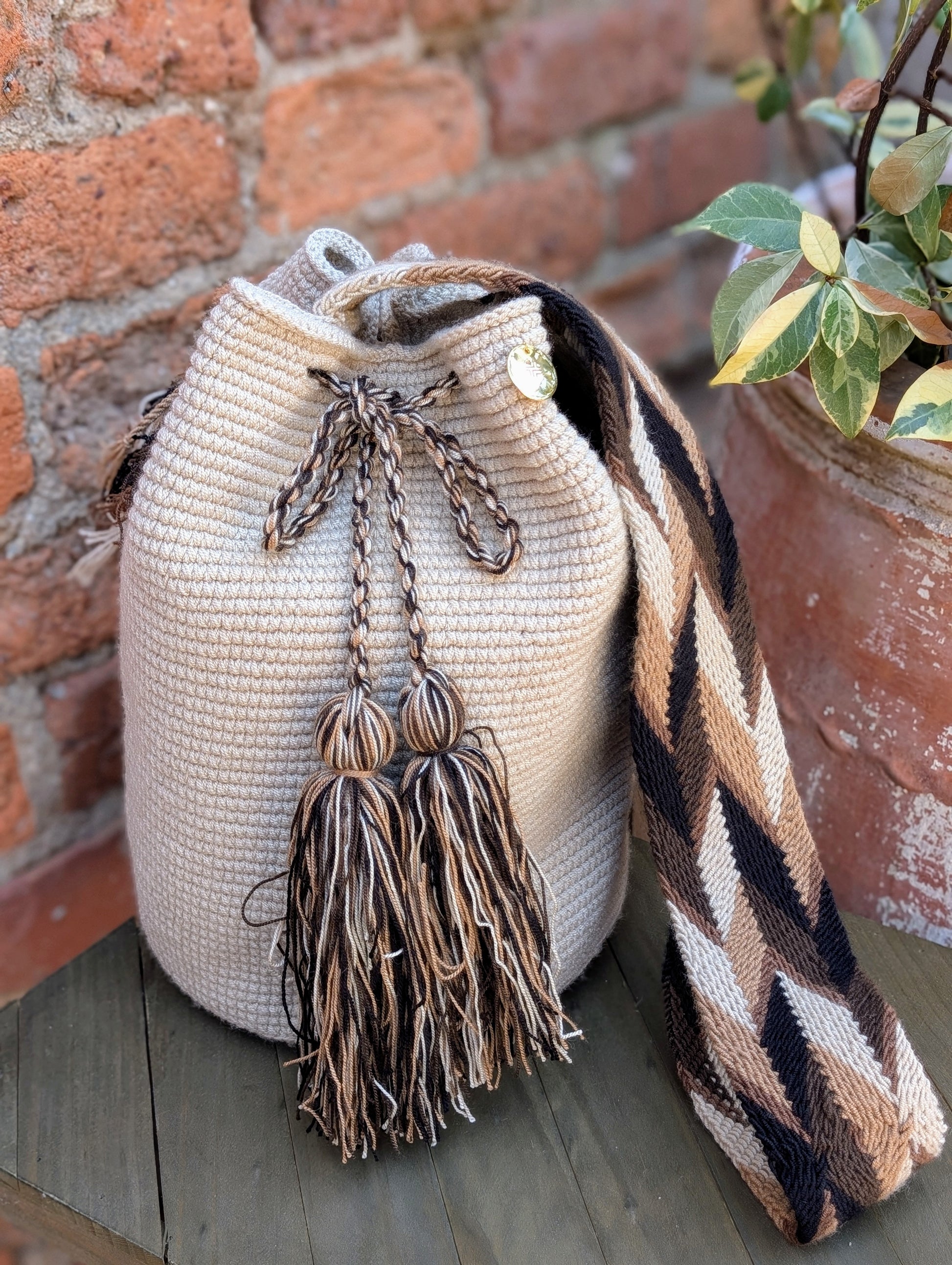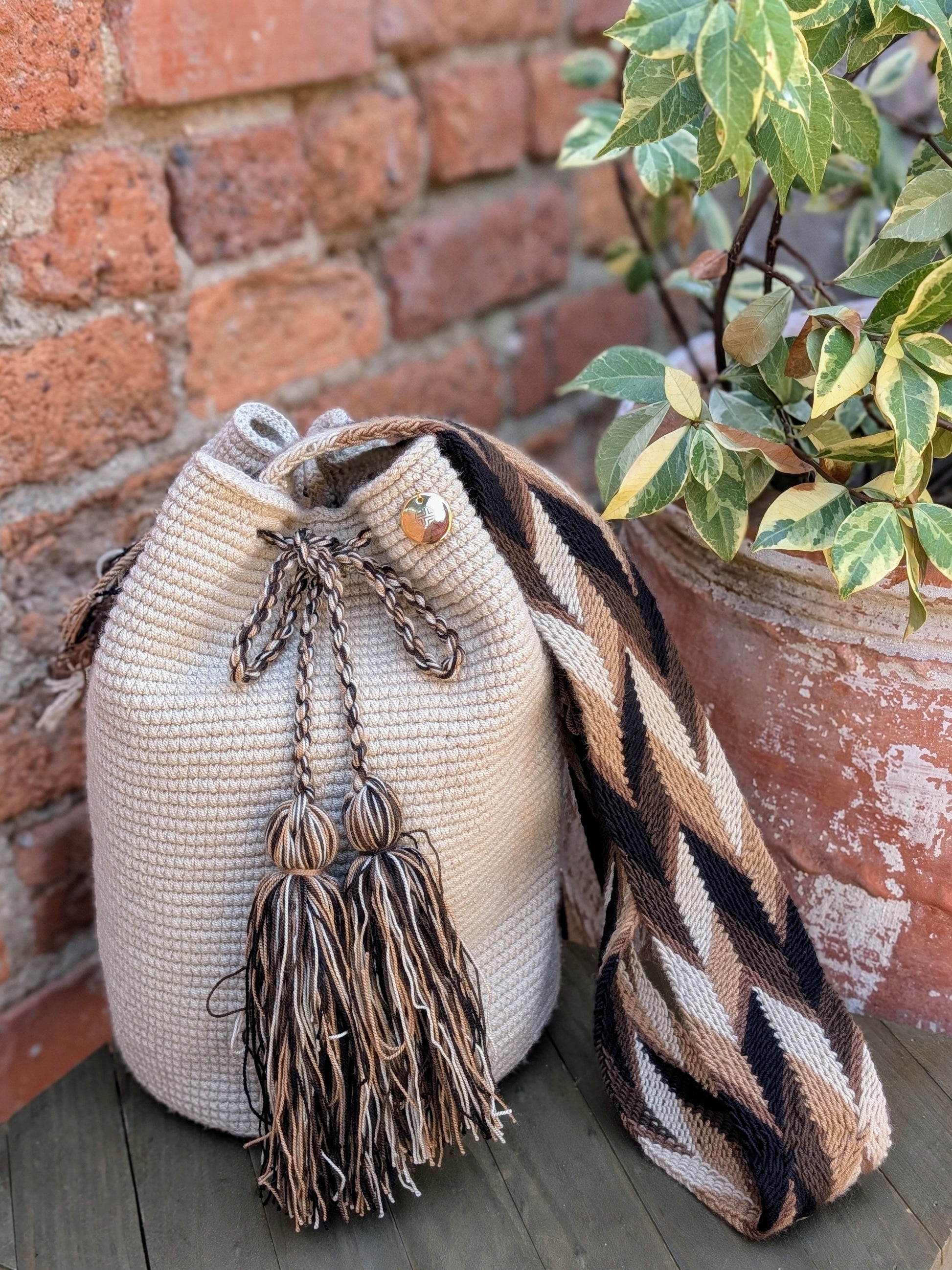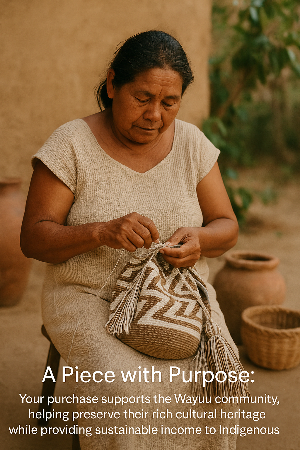 - Handwoven by Wayuu artisans in La Guajira, Colombia