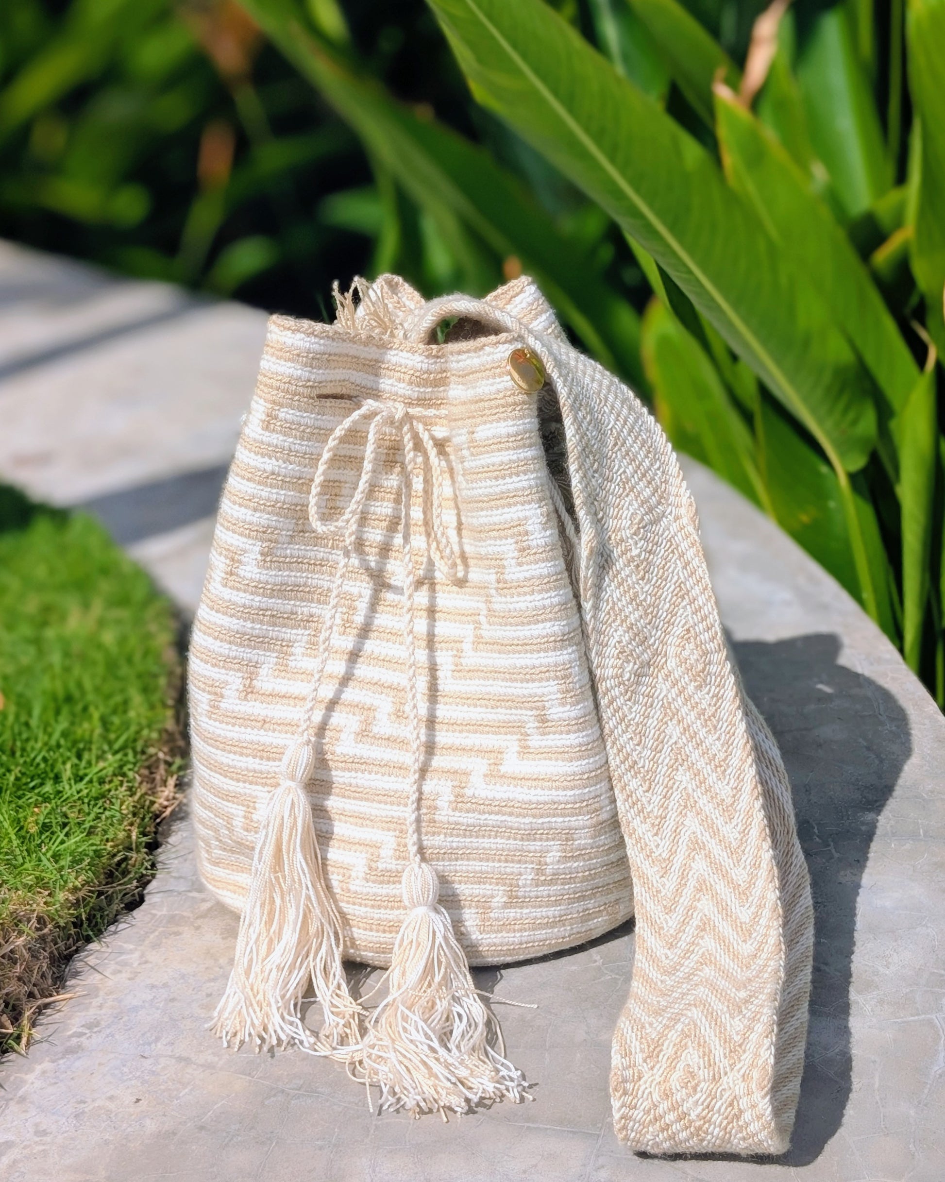 Handwoven by Wayuu artisans in La Guajira, Colombia, the Camino is more than a bag — it’s a journey of craftsmanship, culture, and timeless style. Its sand and ivory tones reflect the natural beauty of Colombia, while the intricate line patterns represent paths woven through tradition. Designed to be both durable and versatile, the Camino transitions effortlessly from everyday wear to special occasions. Each piece takes weeks to create, making it a one-of-a-kind accessory that carries the heritage of its makers.