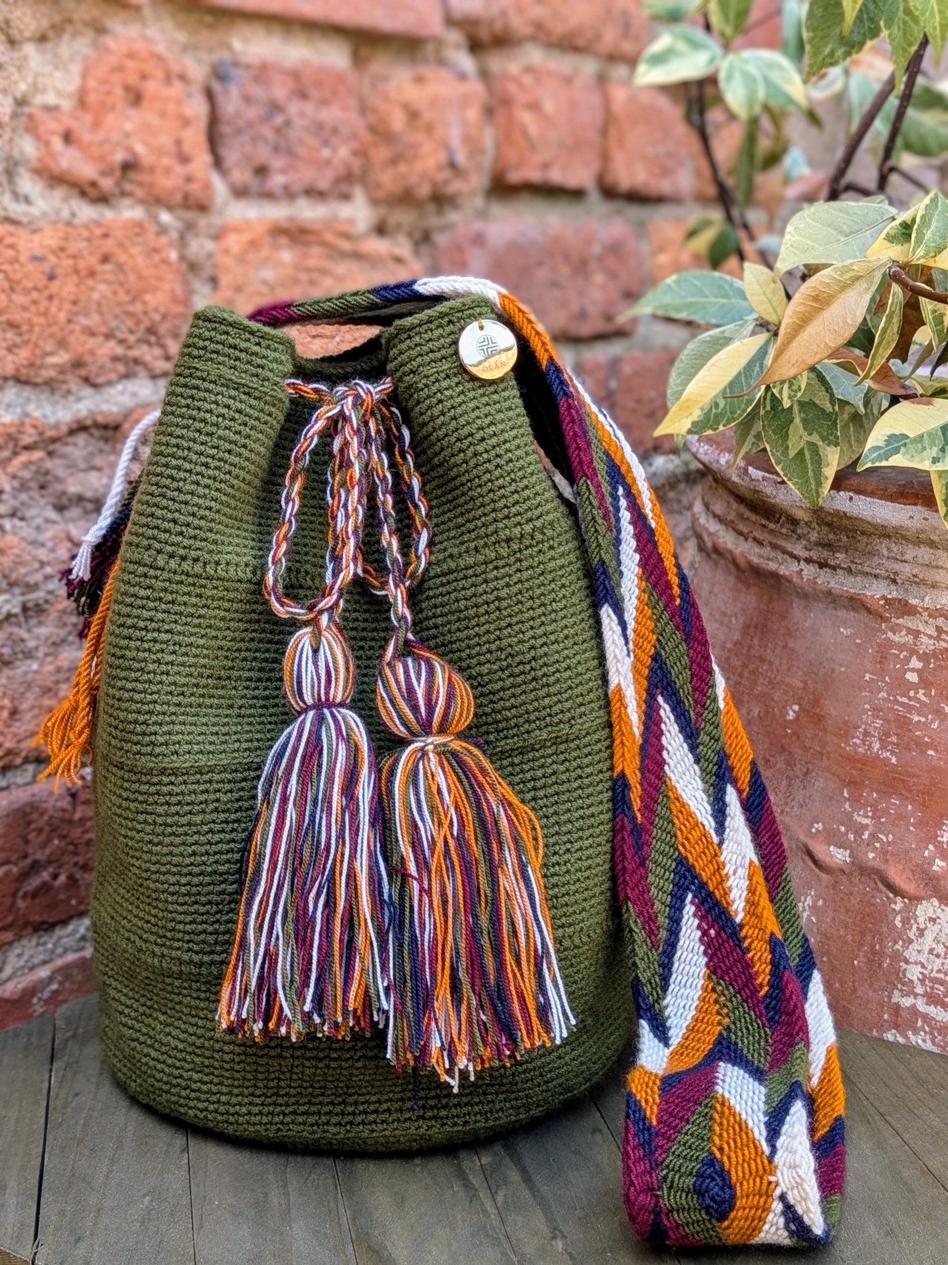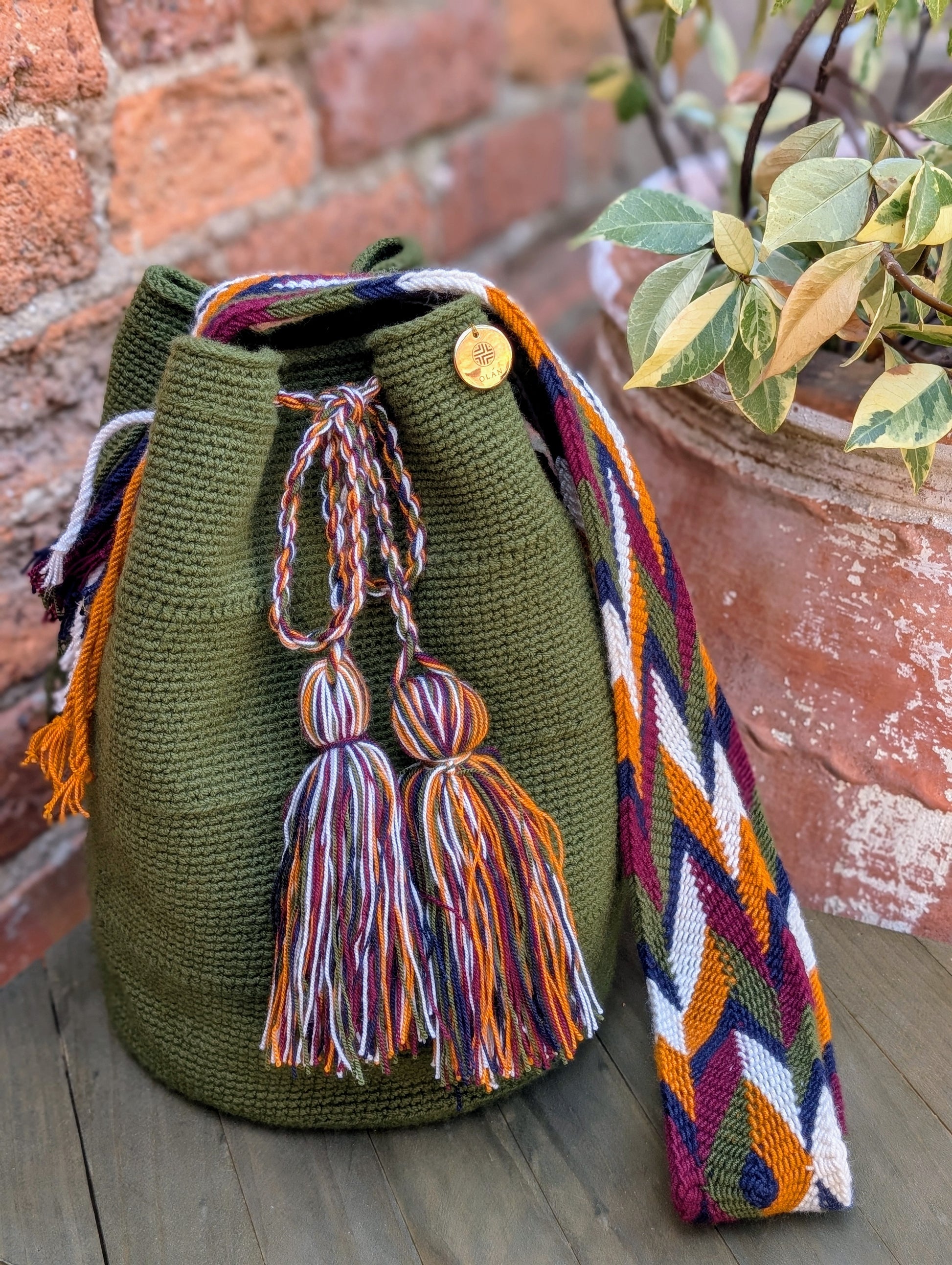 - Handwoven by Wayuu artisans in La Guajira, Colombia