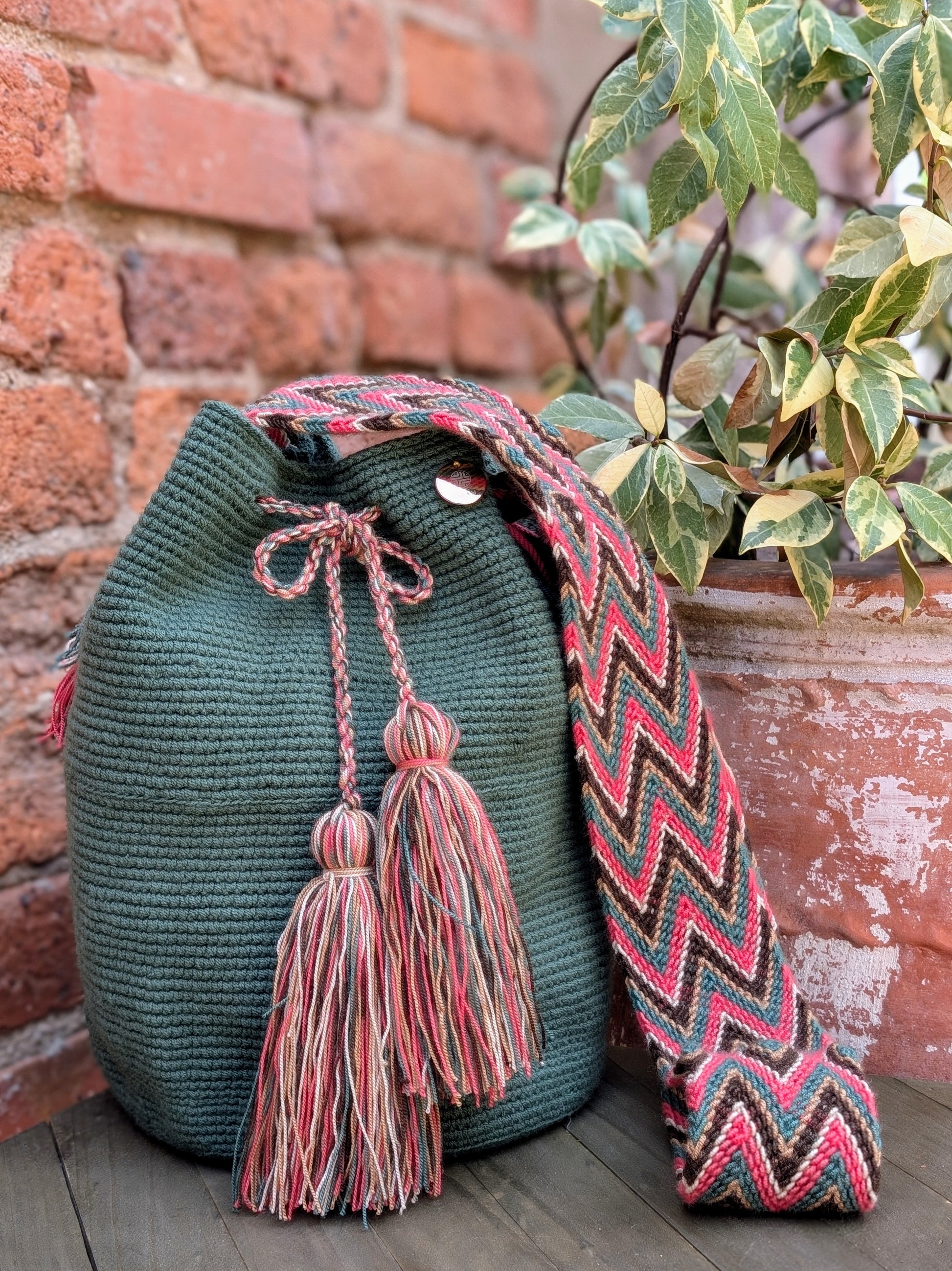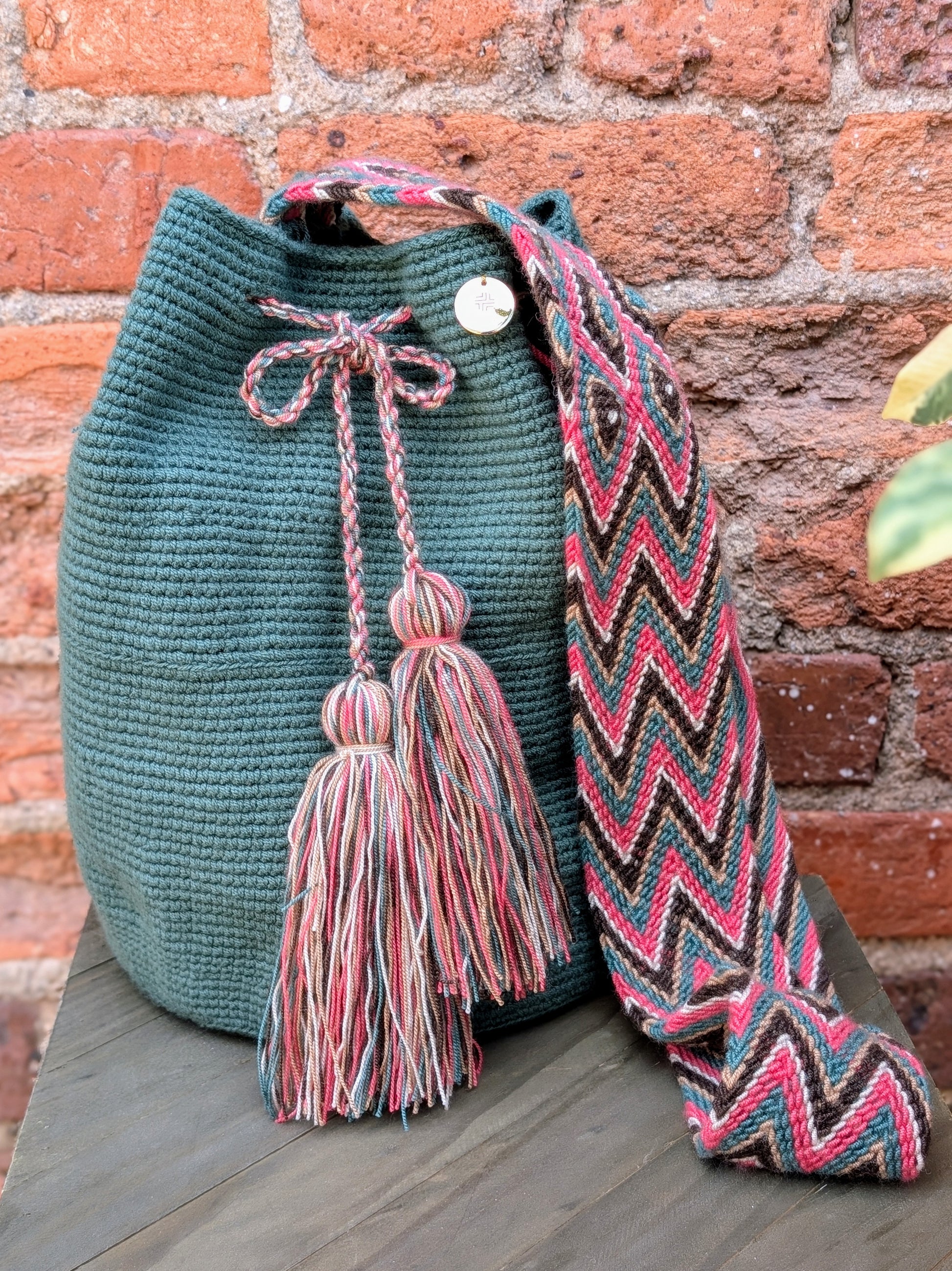 - Handwoven by Wayuu artisans in La Guajira, Colombia